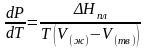 - разность удельных объемов, то вместо мольной теплоты плавления можно взять удельную теплоту плавления (Дж/кг).