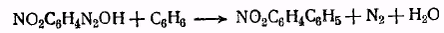 Другой способ получения дифенила и его производных основан на взаимодействии диазоангидрида с ароматическими углеводородами. Если к смеси р-нитрофенилдиазотата натрия и бензола прибавить уксусную кислоту в количестве, достаточном для выделения свободного диазоангидрида, образуется с хорошим выходом р-нитродифенил