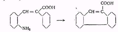 Интрамолекулярная конденсация этого типа наблюдается также при нагревании диазониевых солей, получающихся из некоторых замещенных о-аминобензофенонов. Из о-оксипроизводных замещенных бензофенонов получаются в качестве побочных продуктов флуореноны.