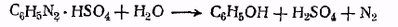 При нагревании водного раствора сернокислого фенилдиазония образуется фенол. Та же реакция наблюдается и в случае других арилдиазониевых солей: