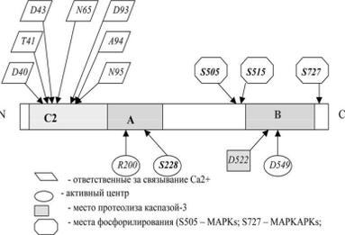 Связывание фосфолипазы с мембраной происходит за счёт имеющегося в белке домена С2: