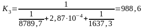 Как видим, q’ ≈ q”. Так как расхождение между тепловыми нагрузками не превышает 3%, на этом расчёт коэффициентов α1 и α2 заканчиваем и находим К3: