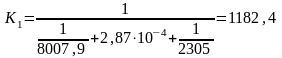 Как видим, q’ ≈ q”. Так как расхождение между тепловыми нагрузками не превышает 3%, на этом расчёт коэффициентов α1 и α2 заканчиваем и находим К1: