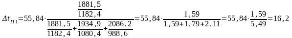 | Распределённые в первом приближении значения Δtп, °С | 21,5 | 17,8 | 16,54 | |