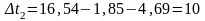 Согласно графику можно определить Δt1 = 1,85 град. Отсюда получим: