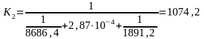 Как видим, q’ ≈ q”. Так как расхождение между тепловыми нагрузками не превышает 3%, на этом расчёт коэффициентов α1 и α2 заканчиваем и находим К2: