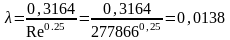Для гладких труб при Re = 855000 коэффициент трения λ равен: