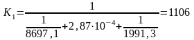 Как видим, q’ ≈ q”. Так как расхождение между тепловыми нагрузками не превышает 3%, на этом расчёт коэффициентов α1 и α2 заканчиваем и находим К1: