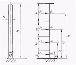 Аппарат по высоте условно разбивается на участки — произвольно, но не более чем через 10 м. Сила тяжести каждого участка принимается сосредоточенной в середине участка. Ветровая нагрузка, равномерно распределенная по высоте аппарата, заменяется сосредоточенными силами, приложенными в тех же точках, что и сила тяжести участков.