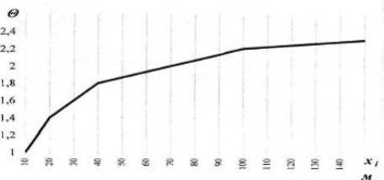 Для высот более 10 м нормативный скоростной напор принимается с поправочным коэффициентом θ, величина которого определяется по графику на рис. 7.