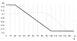 при x3=9,75 м => q3=θ3·q0·К =1·300·0,6=180 Па;