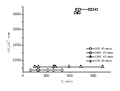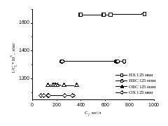 Изотерму адсорбции на неоднородной поверхности определяли по Фрейндлиху [30]: