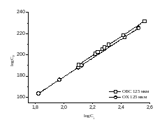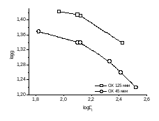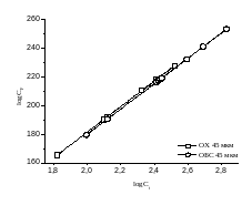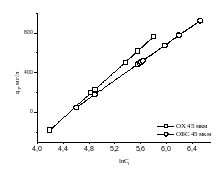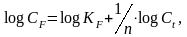 KF и 1/n – константы, определяемые отрезком на оси ординат, отсекаемым касательной, проведенной к начальному участку кривой, и углом наклона, соответственно.