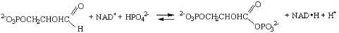 Число известных процессов окисления спиртовых групп до карбонильных с помощью никотинамидных коферментов превышает две сотни. Например, важный промежуточный этап окисления глюкозы – это окисление глицеральдегид-3-фосфата, который протекает по реакции и приводит к образованию смешанного ангидрида 3-фосфоглицериновой кислоты и ортофосфорной кислоты – 1,3-дифосфоглицерата.