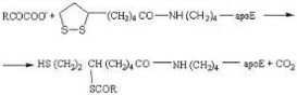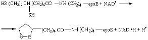 Особого рассмотрения заслуживает подподкласс оксидоредуктаз, к которым относится небольшое число исключительно важных ферментов, катализирующих окислительное декарбоксилирование кетокислот остатком липоамида, связанного амидной связью с через аминогруппу остатка лизина с апоферментом трансацетилазой: