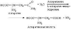 Аспарагиназа и глутаминаза укоряют гидролиз амидов дикарбоновых кислот – аспарагиновой и глутаминовой, например: