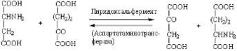 Пиридоксальфермент катализирует реакцию переаминирования. В результате серии реакций, включающих в себя непременное образование фермент-субстратных комплексов, аспаргиновая кислота переходит в щавелево-уксусную кислоту, а кетоглутаровая – в глутаминовую. Это выражается следующим суммарным уравнением: