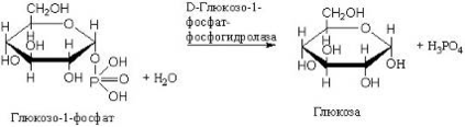 Фосфатазы катализируют гидролиз фосфорных эфиров. Особенно широко распространены фосфатазы, действующие на сложные эфиры фосфорной кислоты и углеводов, например глюкозо-1-фосфатаза: