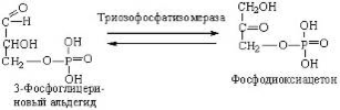 Триозофасфтизомераза ускоряет перенос атомов Н в процессе превращения 3-фосфоглицеринового алдегида в фосфодиоксиацетон и обратно: