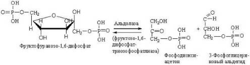 характерным представителем альдегид-лиаз является альдолаза, катализирующая обратимую реакцию расщепления фруктозо-1,6-дифосфата до фосфотриоз: