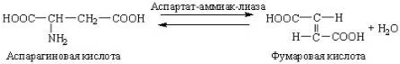 Примером углерод-азот-лиаз может служить аспартат-аммиак-лиаза, ускоряющая реакцию прямого дезаминирования аспарагиновой кислоты: