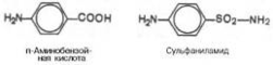 Благодаря этому структурному сходству сульфаниламид блокирует действие фермента путем вытеснения парааминобензойной кислоты из комплекса с ферментом, синтезирующим фолиевую кислоту, что ведет к торможению роста бактерий.