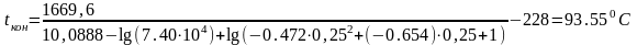 Температуру конденсации вторичного пара в барометрическом конденсаторе мы определяем по формуле: