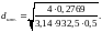 - эквивалентный диаметр, мм.
