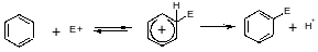 В настоящее время ароматическое электрофильное замещение рассматривается как двухстадийная реакция присоединения-отщепления с промежуточным образованием аренониевого иона, называемого σ-комплексом