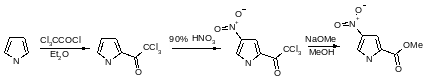 Алкильные заместители облегчают процесс ацилирования по атому углерода: так, 2,3,4-триметилпиррол превращается в 5-ацетилпроизводное даже при кипячении в уксусной кислоте. Более реакционноспособные трифторуксусный ангидрид и трихлорацетилхлорид реагируют с пирролом даже при комнатной температуре с образованием продуктов 2-ацилирования, которые в результате гидролиза или алкоголиза обеспечивают удобный синтетический подход к пиррол-2-карбоновым кислотам или их эфирам.