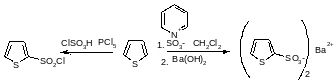 Получение тиофен-2-сульфокислоты при сульфировании серной кислотой уже давно известно, однако использование комплекса пиридинсульфотриоксид, возможно, более удобный метод. 2-Хлорсульфонилирование и 2- тиоцианирование также достаточно эффективны.