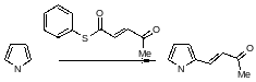 Моноалкилпроизводные пиррола (по атому углерода) не удается получить прямой реакцией пиррола с алкилгалогенидами как в результате катализируемого кислотой Льюиса алкилирования, так и в отсутствие катализатора. Пиррол не вступает в реакцию с метилиодидом при температурах ниже 100˚С, однако при температурах выше 150˚С в результате серии превращений образуется сложная смесь, состоящая главным образом из продуктов полимеризации и некоторого количества полиметилированных производных пиррола. Более реакционноспособный аллилбромид реагирует с пирролом при комнатной температуре, однако в результате этого взаимодействия образуется смесь различных аллилпирролов (от моно - до тетразамещенных) одновременно с продуктами олигомеризации и полимеризации. Наиболее гладко пиррол моноалкилируется сопряженными енонами, содержащими уходящую группу в β-положении.