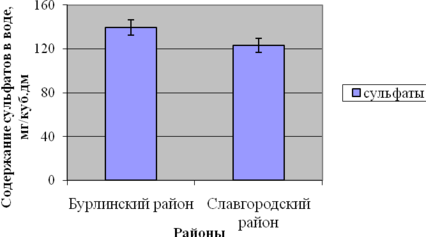 Как мы можем увидеть на рисунке 4, более высокое содержание сульфатов в питьевой воде Алейского района. Это связано с особенностями геологической структуры и почвенного покрова района.