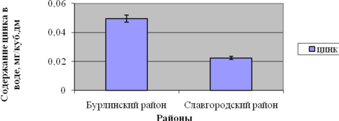 Более высокое содержание цинка в питьевой воде Бурлинского района (рис. 7). Такой уровень содержания цинка в питьевой воде связан с особенностями природных условий районов.
