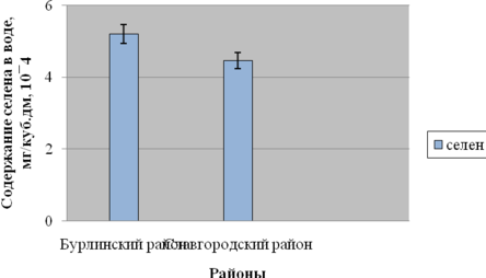 На рисунке 9 мы можем увидеть, что более высокое содержание селена в питьевой воде Алейского района.