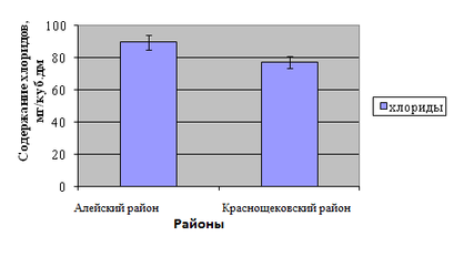 Более высокое содержание хлоридов в питьевой воде Алейского района. В Алейском районе чаще, чем в Краснощековском встречаются солончаковые и солонцовые почвы.