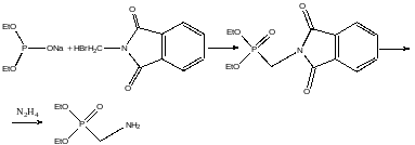 Впервые α-аминофосфонат, а именно аналог глицина, был получен по реакции Михаэлиса-Беккера (аналог синтеза первичных аминов по Габриэлю)[4]: