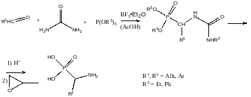 Этот метод синтеза α-аминофосфонатов остается самым простым. Достаточно часто реакцию приходится проводить в жестких условиях, а выходы могут варьироваться в широких пределах.