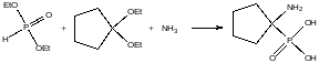 Введение аминогруппы может быть произведено при помощи нуклеофильного замещения [4]. В реакцию аминирования под действием аммиака., например, вступают α-галогенофосфоновые кислоты. Вместо аммиака также вводят азидную группу, воостанавливая ее гидрированием на Pd/C или трифенилфосфином. Также используют аналогичный спирт вместо галогенпроизводных: