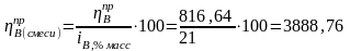 Рассчитаем практические расходные коэффициенты для кислорода в смеси с азотом: