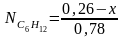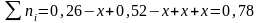 | Осталось в состоянии равновесия | 0,26-х | 0,52-х | х | х |