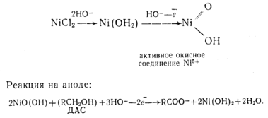 Процесс электрохимического окисления проводится в присутствии катализатора — хлористого пли сернокислого никеля.