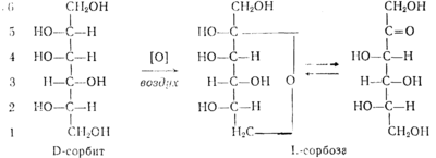 Наиболее совершенная стадия в промышленном синтезе аскорбиновой кислоты—трансформация D-сорбита в L-copбозу, осуществляемая микробиологическим окислением. При этом используется уникальное свойство бактерий — выполнять направленный процесс окисления многоатомных спиртов в сахаре.