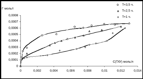 Рис.1.Кинетика адсорбции ТХУ (моль/г.) на монтмориллоните.