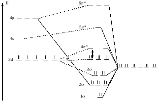 Рис. 5. Энергетическая диаграмма [Fe(CN6)]4- (метод МО).
