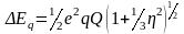 3) Электрическое квадрупольное взаимодействие возникает вследствие взаимодействия квадрупольного момента ядра Q с градиентом электрического поля q, создаваемого электронной оболочкой атома или кристаллической решеткой твердого тела, в результате чего в спектрах поглощения наблюдается не одна, а несколько линий. Если спин ядра I > 1/2, a q ≠ 0, это взаимодействие приводит к "расщеплению" ядерного энергетического уровня на подуровни, расстояние между которыми определяется, например, для ядра 57Fe выражением [4]: