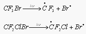 В молекулы некоторых фреонов так же включен Br наряду с ат. Cl или вместо него – эти вещества называются галлоны (вместо фреонов), например CF2ClBr – гало 1211, CF3Br – галлон 1301