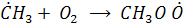Взаимодействие алкильного (метильного) радикала с О2 дает пероксильный радикал: