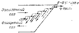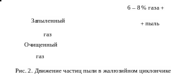 (около 150) изменении направления узких струек газового потока, проходящих через зазоры между лопастями жалюзи, и отражении ударяющихся о поверхности лопастей частиц пыли в направлении щели, через которую удаляется часть газового потока, обогащенного пылью (рис. 2).