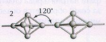В процессе этого мнимого вращения один из экваториальных заместителей, называемый опорным лигандом (в нашем случае обозначен цифрой 5) остается в экваторальном положении, в то время как другие лиганды формируют собой основание воображаемой тетрагональной пирамиды за счет искажения валентных углов. Валентный угол между связями 1-Р-2 уменьшается от 180 до 1200, а между связями 3-Р-4 увеличивается от 120 до 1800, т.е. апикальные лиганды 1 и 2 в конце концов займут экваториальные, а экваториальные лиганды 3 и 4 - апикальные положения. В результате образуется диастереомер исходной системы, т.е. происходит кажущийся поворот лигандов на 900 относительно опорного лиганда 5.